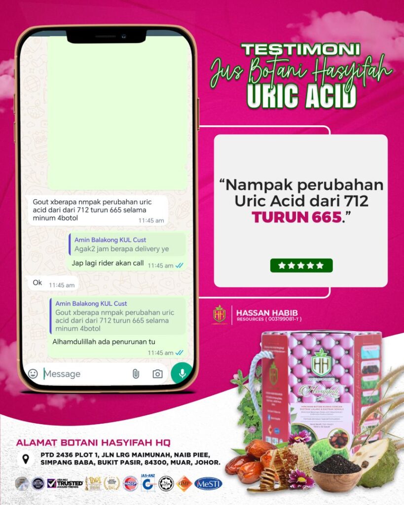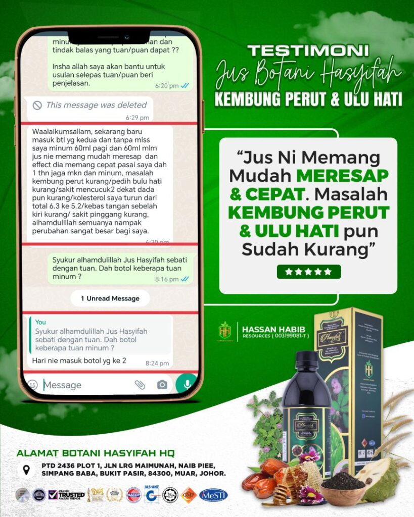 Testimoni - Urat Saraf Testimoni - Buah Pinggang Testimoni - Ketumbuhan Testimoni - Kanser Testimoni - Asthma Testimoni - Sesak Nafas Testimoni - Kencing Testimoni - Migrain Testimoni - Kencing Manis Testimoni - Jantung Testimoni - Alahan Testimoni - Darah Tinggi Testimoni - Anxiety Testimoni - Bengkak Testimoni - Gout Testimoni - Pendarahan Testimoni - Tulang Testimoni - Ulu Hati Tempah Jus Botani Hasyifah Sekarang!